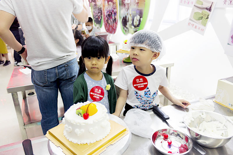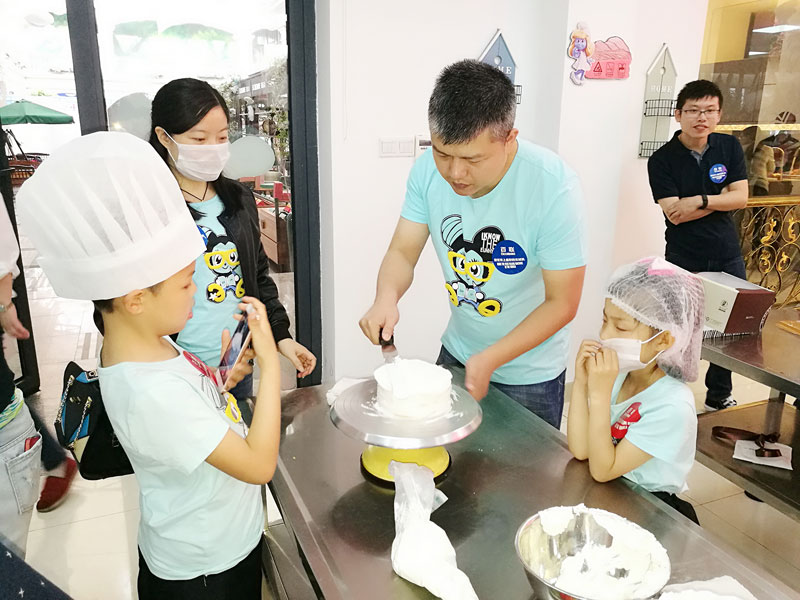 In a cake factory in Changshu, 23 families from Bealead big family gathered together. Parents and children joined hands and finished one thing —— make cakes.