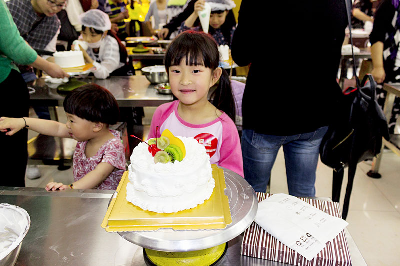 There’s a lot of joy during the process of doing cakes, every children are good. After the corporate efforts, the cakes finished one by one. Everyone has shape, yes? There’s more joy behind.