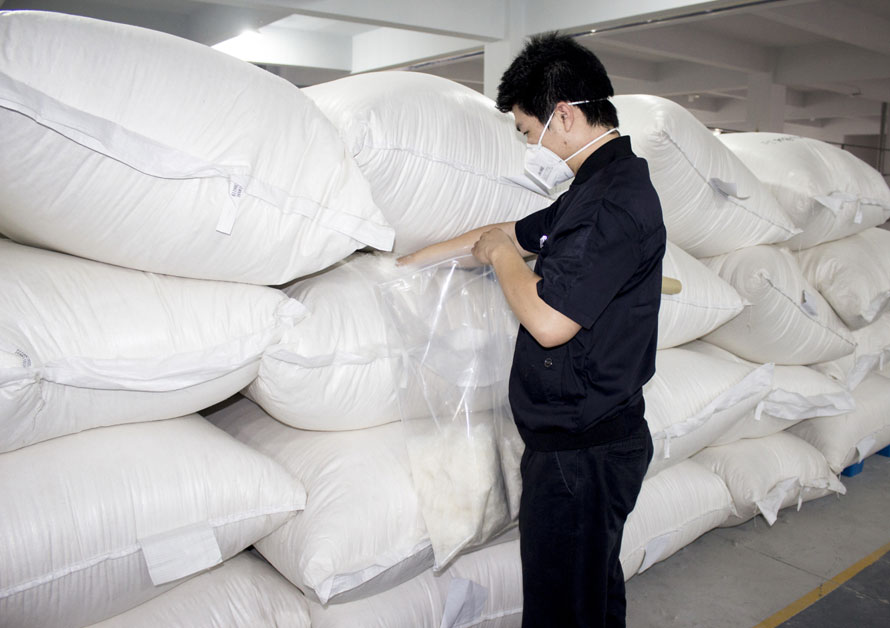 We have professional sampling division, who will take samples from upper, middle and lower position at down package. To bale packing and backlogging package, there’s professional sampling action to prevent the damage of down flower. After passing of specialized sampling, mix the samples sufficiently and then do sampling, send to authoritative inspection body to have checking.
