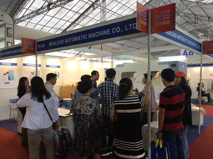 During the exhibition, Bealead booth on Hall 7 (7D-30) is really crowded. The expedition to Vietnam, Bealead has showed the super new products as X-type modularity down-filling machine, 402D full automatic down & cotton all-in-one machine, and 618A full automatic four flow method down-filling machine. It has not only recommended new function and technology, but also considered economic, practical, sustainable user requirement. The market responded enthusiastically, and got well expected effect.