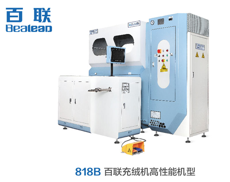 百聯展品:818B百聯充絨機高性能機型;402B百聯全自動稱重充棉機