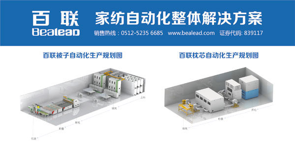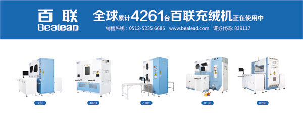 百聯展品:X型模塊化自動充絨機、402D全自動絨棉一體機、1208型全自動充棉枕芯機