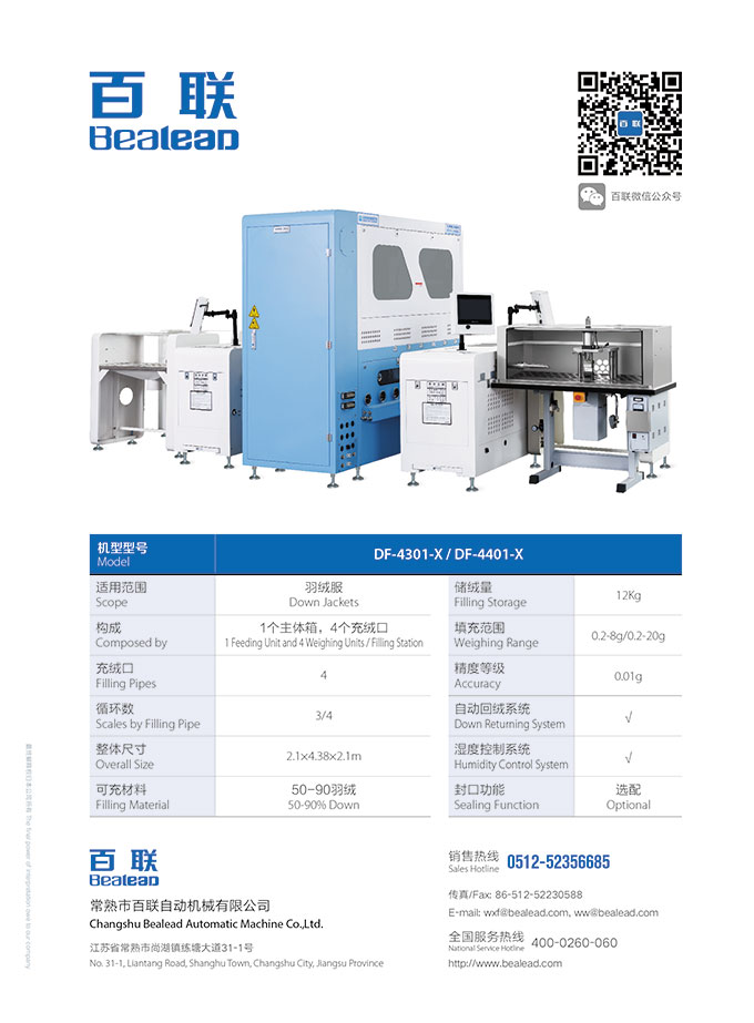 百聯展品:X型模塊化自動充絨機(2401X加封口機)