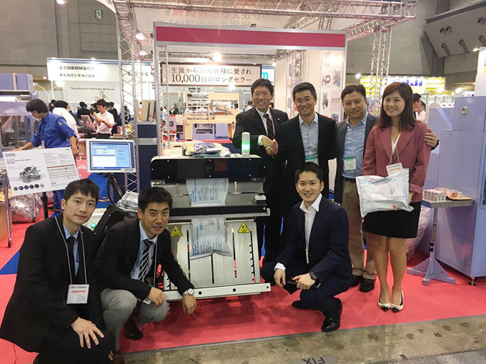此次展出的P505S型自動發包機集成驗貨、打印、貼標 和封口一體化解決方案 ,適用于T 恤、襯衫、連衣裙、牛仔褲等快遞袋形式包裝的服裝企業。具有智能打印、高效省工、包裝美觀、節能環保等多項技術優點,吸引了“JAPAN PACK 2017”參觀者的積極關注。