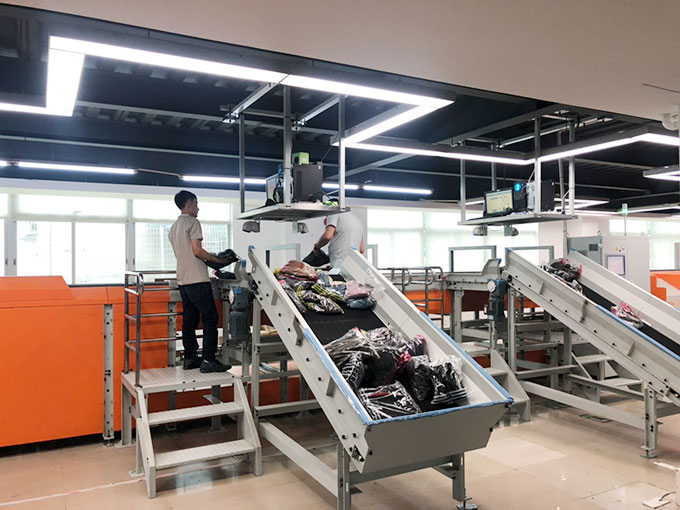 在服裝制造領域,深圳影兒國際導入聯領智能直接分揀系統,用于服裝的逆向物流(退換貨)分揀,改變了原來完全依賴熟練工死記硬背產品貨號、對應貨位的分揀方式。現在,工人們只需掃描退(換)貨產品的條碼,將其放入設備“小車”上,系統就會按照產品的貨號自動進行合并,或者是根據貨位號、巷道號等信息進行自動合并,大幅度減輕了員工的勞動強度、降低分揀錯誤率,加快了產品上架的速度。