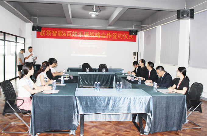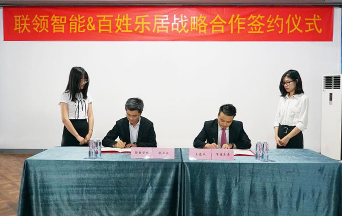 2018年8月2日,江蘇常熟。聯領智能與蘇州百姓樂居智能科技有限公司(簡稱百姓樂居)正式簽訂戰略合作協議。根據協議,雙方將在互惠互利、合作共贏的原則之上,就智慧門店應用技術達成戰略合作,聯領智能將為百姓樂居下轄終端門店提供智慧傳感技術服務。