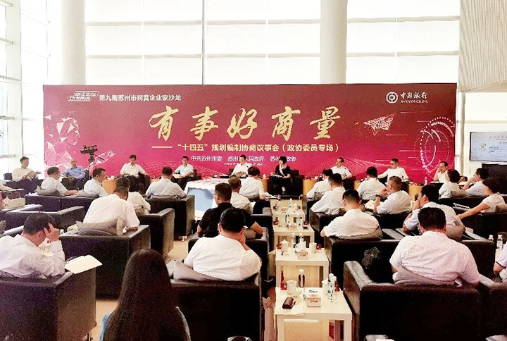 8月25日,蘇州市委、市政府、市政協聯合舉辦了“有事好商量”之“十四五”規劃編制協商議事會暨第九期民營企業家沙龍(政協委員專場)。省委常委、市委書記藍紹敏出席會議,并與20多位民營企業家政協委員一起圍繞高水平編制蘇州“十四五”發展規劃的核心問題進行深入互動交流,共同謀劃蘇州未來發展宏偉藍圖。我司錢衛波董事長作為蘇州市政協委員應邀出席此次協商議事會,為“十四五”發展積極建言獻策。