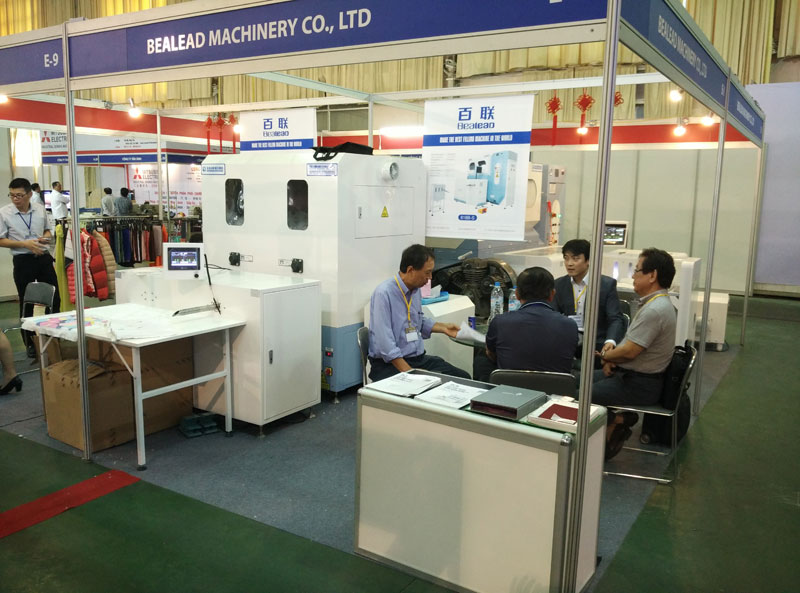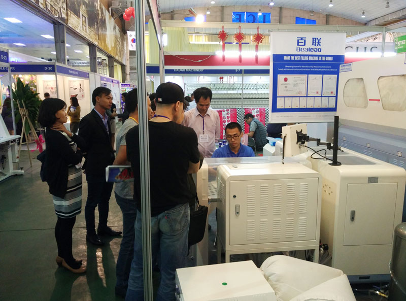 展會期間,百聯攜818B-S帶加速器高性能自動充絨機、402B全自動稱重充棉機、2301高性能雙口自動充絨機參展,許多新老客戶蒞臨百聯展位咨詢新產品詳情。